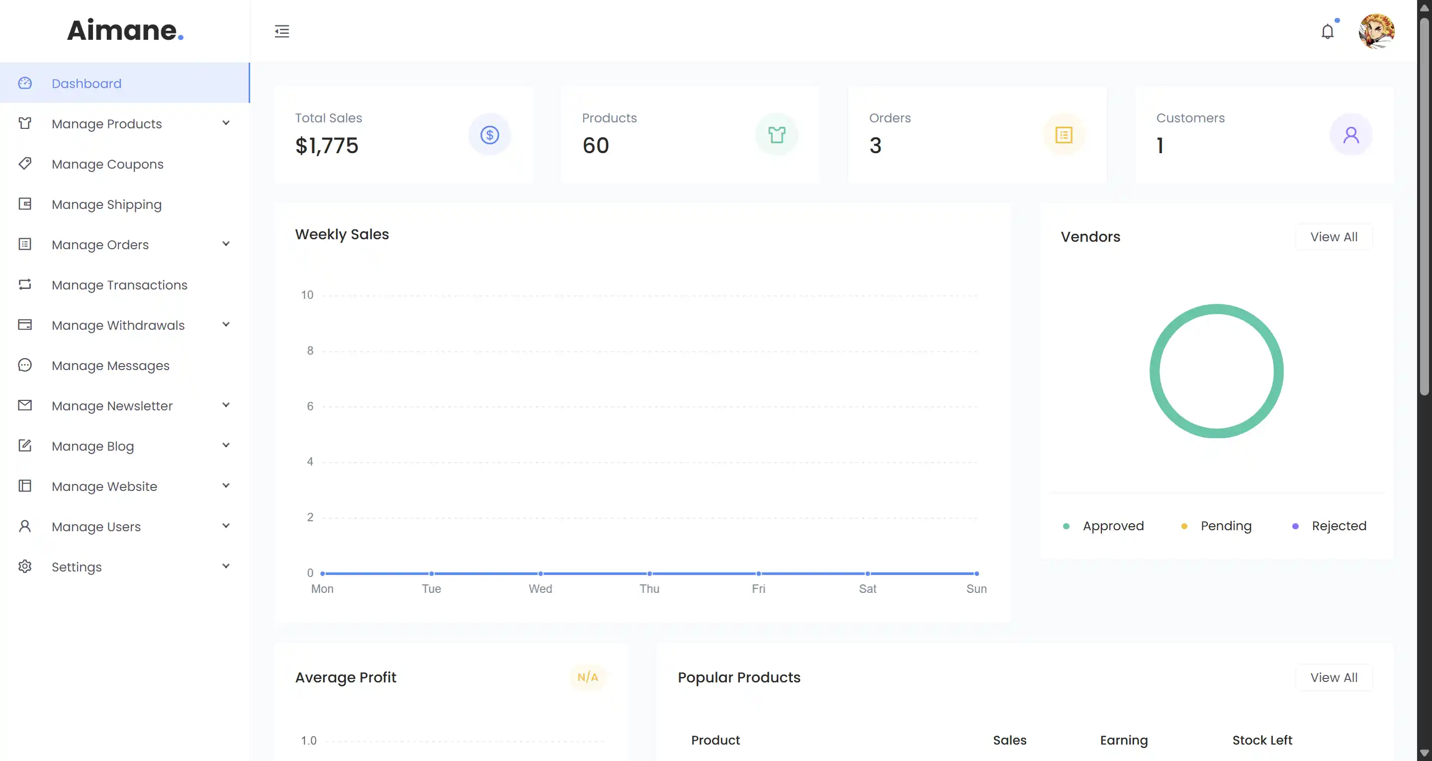 On the admin side, the marketplace includes a robust back office where admins can manage products, vendors, orders, payments, shipping rules, site content like blogs, newsletters, and homepage banners, and more. Vendors are treated as users with extra permissions, and they can chat with customers, manage their inventory and orders, and fulfill requests. The system is live and publicly hosted at marketplace.aimanecouissi.com.